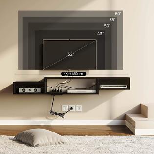 Generic Rolanstar Wall Mounted Media Console With Power Outlet 59 Rustic Floating Tv Stand Component Shelf Entertainment Storag